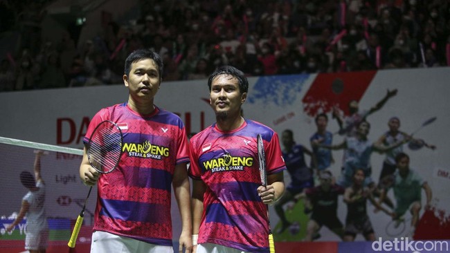 Hendra/Ahsan harus melalui laga ketat di babak 32 besar turnamen Indonesia Masters yang berlangsung di Istora GBK, Jakarta, Selasa (24/1/2023).