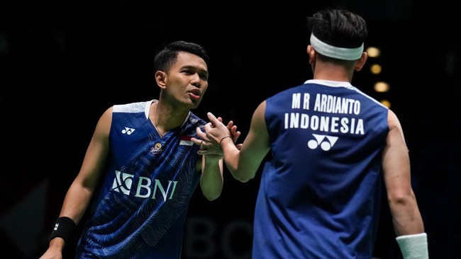 Fajar Alfian/Muhammad Rian Ardianto tampil sebagai juara All England 2023. Fajar/Rian juara usai menang 21-17, 21-14 atas Mohammad Ahsan/Hendra Setiawan.