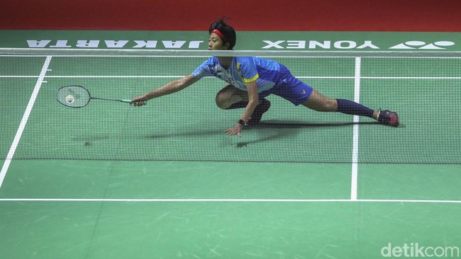 Putri KW menghadapi wakil Thailand Lalinrat Chaiwan di St. Jakobhalle, Basel, Rabu (22/3/2023) malam WIB. Tunggal putri Indonesia itu praktis tak menemukan kesulitan cukup berarti untuk menang 21-13 dan 21-13.
