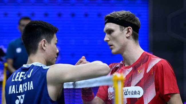 Duel Viktor Axelsen vs Lee Zii Jia di Piala Sudirman 2023 tuntas secara instan. Axelsen cedera, sampai terpincang-pincang, dan bikin lawannya terkejut.