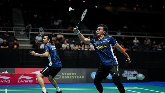 Hendra Setiawan/Mohammad Ahsan melaju ke babak berikutnya di ajang Indonesia Open 2023. The Daddies menyingkirkan Supak Jomkoh/Kittinupong Kedren 21-16 dan 21-17.