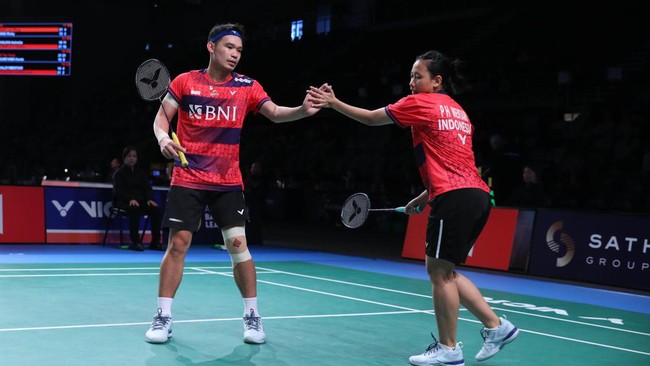 Rinov Rivaldy/Pitha Haningtyas Mentari melaju ke perempatfinal Australia Open 2023 usai mengalahkan ganda Malaysia, Chen Tang Jie/Toh Ee Wei dengan skor 21-16, 17-21, 21-19 dalam waktu 58 menit.