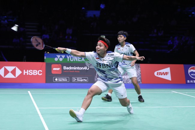 Bertanding di Royal Arena, Copenhagen, Denmark, pada Sabtu (26/8/2023), Apri/Fadia menghadapi lawan tangguh dari Korea Selatan, Kim So Yeong/Kong Hee Yong, merupakan unggulan ketiga Kejuaraan Dunia Bulutangkis.
