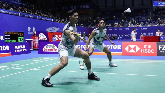 Pramudya Kusumawardana/Yeremia Rambitan melaju ke perempat final China Masters 2023 usai menekuk wakil Denmark, Rasmus Kjaer/Frederik Sogaard dengan skor 21-18, 21-16.