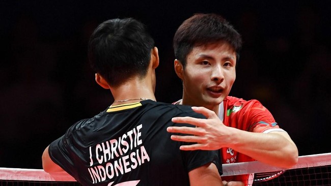 Pertandingan antara Jonatan vs Shi Yu Qi digelar di Hangzhou Olympic Sports Gymnasium, Sabtu (16/12/2023). Jonatan bertarung selama hampir sejam sebelum menyerah dengan skor 16-21, 15-21.