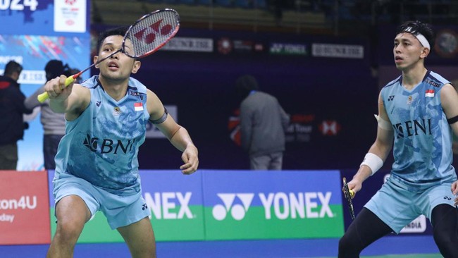 Ganda putra Fajar Alfian/Muhammad Rian Ardianto membuka dengan kemenangan dua gim langsung di Indonesia Masters 2024. Fajar/Rian menyisihkan wakil Taiwan.