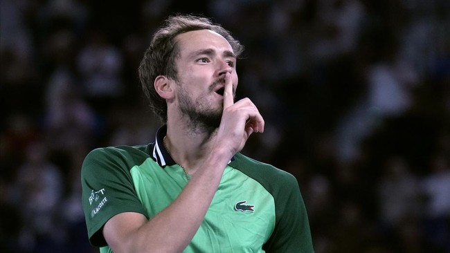 Medvedev berusaha memperpanjang nafas di set ketiga. Skor ketat dengan Medvedev bisa menang 7-6 tie break 7-4.