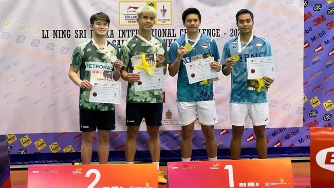 Rahmat/Yeremia berhasil menjadi juara Sri Lanka International Challenge 2024 berkat kemenangan 18-21, 21-15, 21-15 melawan pasangan Malaysia Bryan Jeremy Goonting/M Fazriq Mohamad Razif.