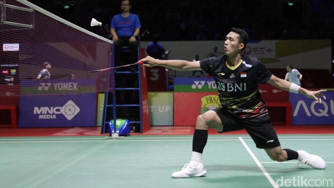 Jonatan vs Chou Tien-chen bertemu di babak pertama yang berlangsung di Utilita Arena Birmingham, Rabu (13/3/2024) malam WIB. Jonatan menuntaskan permainan dengan kemenangan 21-4, 21-15.