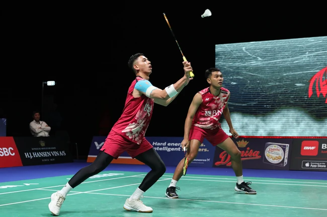 Thomas Cup 2024 dimulai, Indonesia hadapi Inggris. Di partai kedua, Fajar/Rian menang dua gim langsung dan buat Merah Putih unggul 2-0.