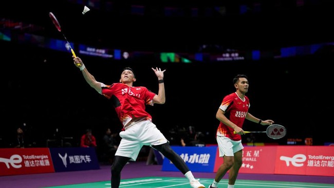 Fajar Alfian/Muhammad Rian Ardianto memberi poin kedua untuk Indonesia atas Taiwan di semifinal Thomas Cup 2024. Mereka menang rubber game atas Lee Yang/Wang Chi-Lin.