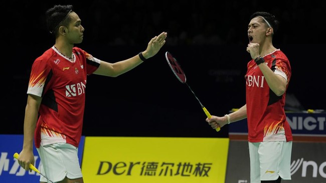 Fajar Alfian/Muhammad Rian Ardianto melangkah ke babak 16 besar Singapore Open 2024. Fajar/Rian lolos setelah menaklukkan Bjarne Geiss/Jan Colin Voelker.