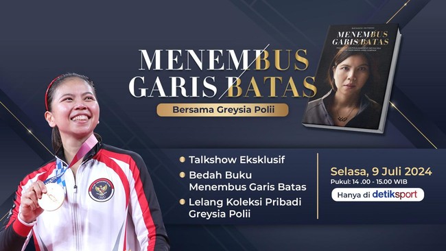 "Menembus Garis Batas" bersama Greysia Polii akan digelar pada Selasa, 9 Juli 2024 secara LIVE.