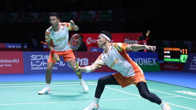 Fajar Alfian/Muhammad Rian Ardianto melangkah ke semifinal Denmark Open 2024. Fajar/Rian menang dua gim langsung atas ganda putra Inggris Ben Lane/Sean Vendy.