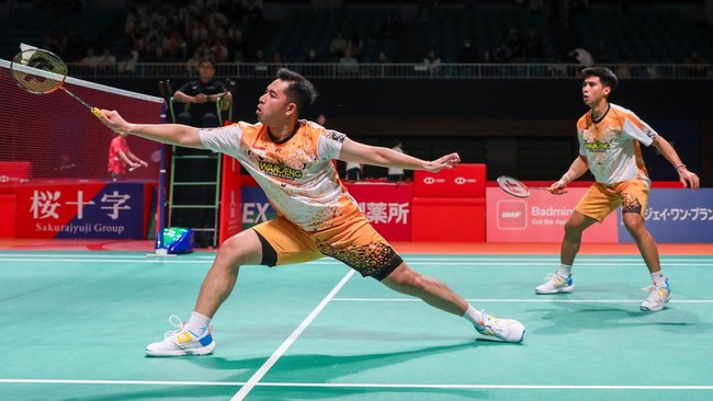 Sabar/Reza takluk di tangan juara dunia 2021 Takuro Hoki/Yugo Kobayashi dalam pertandingan 16 besar yang berlangsung di Kumamoto Prefectural Gymnasium, Kamis (14/11/2024). Mereka kalah dari wakil tuan tumah tersebut dua gim langsung 19-21, 20-22 dalam tempo waktu 41 menit.