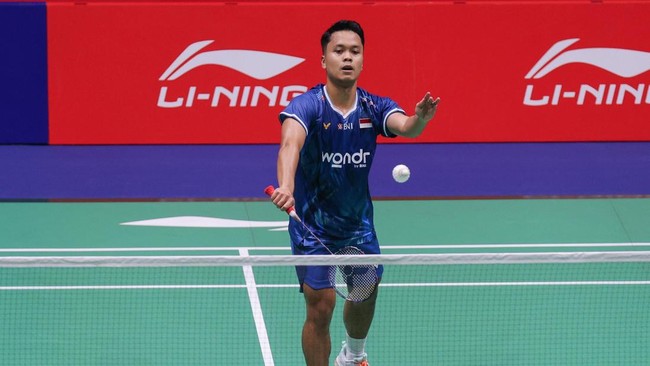 Anthony Sinisuka Ginting melawan Leong Jun Hao (Malaysia) pada babak pertama China Masters 2025. Duel Anthony vs Leong berlangsung di Shenzhen Arena, Rabu (17/9/2025) siang WIB.