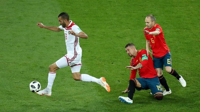 Gol pembuka Maroko bahkan terjadi karena kesalahan Andres Iniesta dan Gerard Pique. Selanjutnya, Maroko beberapa kali menciptakan peluang emas yang bisa digagalkan David de Gea.
