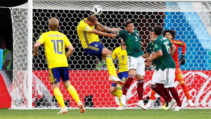 Bertanding di Ekaterinburg Arena, Rabu (27/6/2018) malam WIB, Swedia langsung membuat ancaman ke pertahanan Meksiko. Sebastian Larsson melepaskan umpan lewat tendangan bebas, bola disundul Marcus Berg ke depan gawang Meksiko, namun Andreas Granqvist gagal menyambarnya.