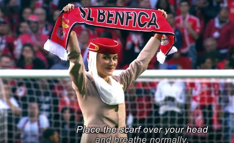 Delapan orang pramugari berjalan masuk ke tengah lapangan jelang laga kandang Benfica. Kehadiran pramugari-pramugari dalam seragam maskapai Emirates itu membuat banyak suporter heran. Wajah-wajah suporter Benfica yang tertangkap kamera menunjukkan hal tersebut.