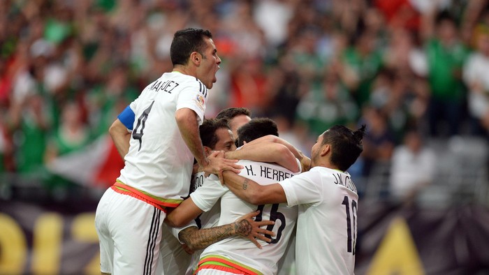 Diego Godin sempat menyamakan skor 1-1 di menit ke-74 sebelum dua gol Rafael Marquez dan Hector Herrera di lima menit akhir laga membuat Meksiko menang 3-1.