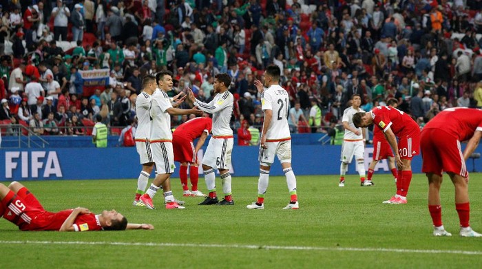Meksiko berbalik unggul 2-1 pada menit ke-52 lewat Rodrigo Lozano ketika dia memanfaatkan kesalahan Akinfeev yang terlanjur maju meninggalkan sarangnya. Lanzano dengan mudah menyundul bola ke dalam gawang.