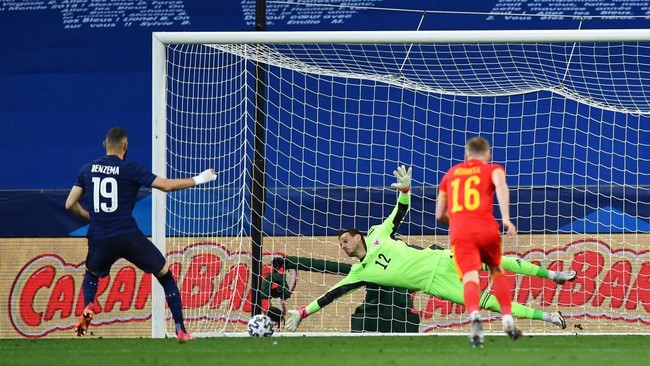 Benzema sebenarnya punya peluang mencatatkan namanya di papan skor pada menit ke-27 saat menjadi eksekutor penalti Prancis. Namun, sepakannya dari titik putih masih bisa ditepis kiper Wales, Danny Ward.