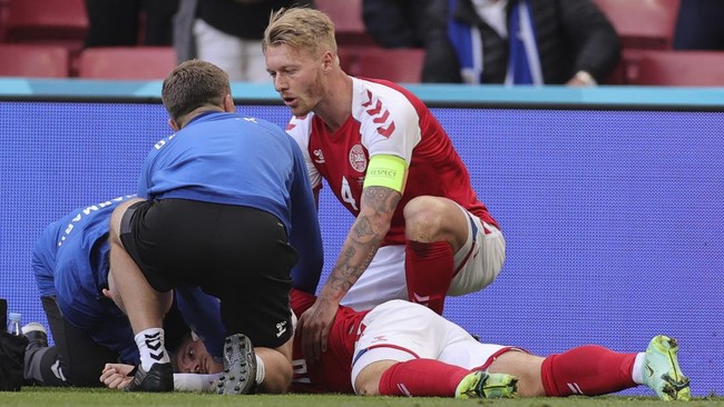 Laga Grup B Euro 2020 antara Denmark vs Finlandia di Stadion Parken, Kopenhagen, Sabtu (12/6) malam WIB, sempat dihentikan. Penyebabnya, Eriksen kolaps di lapangan.