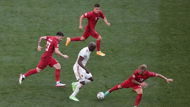 Denmark vs Belgia bertemu pada matchday kedua Grup B Euro 2020 di Stadion Parken. Pada duel yang tuntas Jumat (18/6/2021) dini hari WIB, Denmark sudah unggul 1-0 di menit kedua lewat gol Yussuf Poulsen. Skor tersebut bertahan hingga turun minum.