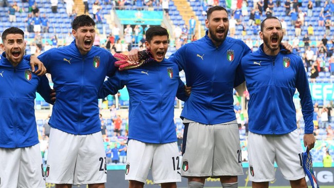 Italia tampil gemilang sejauh ini di Piala Eropa 2020. Skuad asuhan Roberto Mancini itu menyapu bersih kemenangan selama fase grup, mencetak tujuh gol dan nirbobol dalam tiga pertandingan.