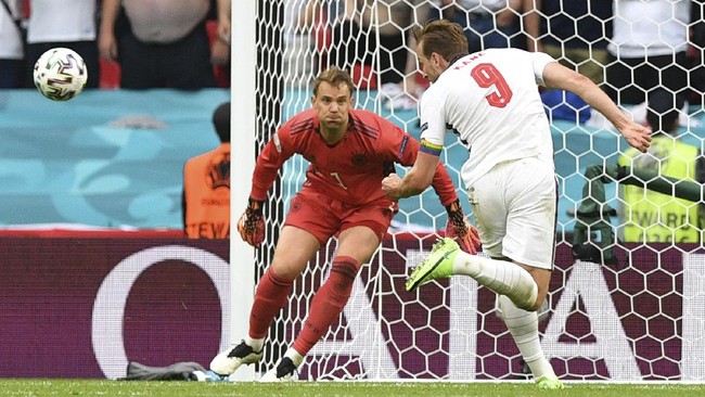 Inggris menjamu Jerman di Stadion Wembley, Selasa (29/6/2021) malam WIB. Kedua tim berimbang tanpa gol sampai 70 menit pertandingan bergulir. Raheem Sterling memecah kebuntuan di menit ke-75, sebelum Harry Kane memastikan kemenangan Tiga Singa dengan golnya pada 11 menit kemudian.