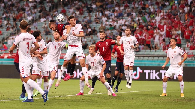 Serangan cepat Denmark memicu situasi bagus, dengan Mikkel Damsgaard tinggal menghadapi bek Tomas Kalas dan kiper. Tapi sepakannya mudah diatasi Tomas Vaclik, kiper Ceko.