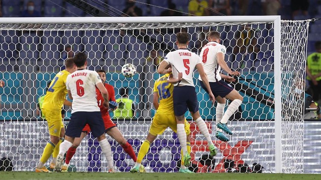 Inggris menjejak semifinal Euro 2020 dengan hasil meyakinkan, usai menang 4-0 atas Ukraina di Olimpico, Roma, Minggu (4/7/2021) dini hari WIB. Harry Kane menyumbang dua gol, sementara dua lainnya masing-masing dibuat Harry Maguire dan Jordan Henderson.