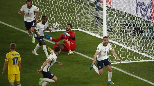 Inggris menghadapi Ukraina di perempatfinal Piala Eropa 2020 di Stadion Olimpico, Roma, Minggu (4/7/2021) dini hari WIB. Inggris unggul 1-0 di babak pertama berkat gol cepat Harry Kane pada menit keempat.