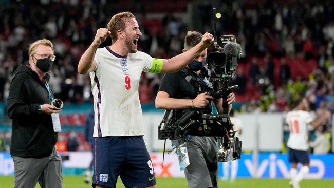 Harry Kane bikin catatan apik kala membawa Inggris melaju ke final Euro 2020. Dia menyamai Gary Lineker sebagai top scorer 'Tiga Singa' di ajang besar.