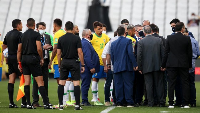 Melansir laporan Globo, Anvisa dan kepolisian Brasil menghentikan laga lantaran ada pelanggaran protokol kesehatan yang dilakukan skuad Argentina. Empat pemain Tim Tango yang bermain di Premier League dianggap melanggar aturan karantina.