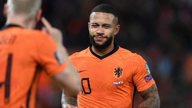Memphis jadi starter pada lanjutan Kualifikasi Piala Dunia 2022 zona Eropa Grup G di De Kuip, Selasa (12/10/2021) dini hari WIB. Memphis diduetkan bareng Steven Berghuis dan Noa Lang di depan.