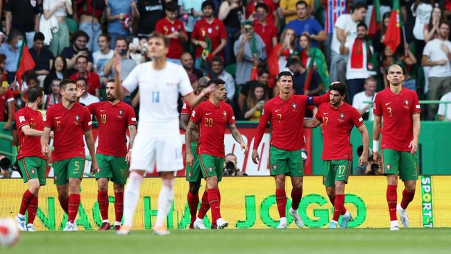 Portugal vs Republik Ceko pada laga League A Grup 2 UEFA Nations League tersaji di Estadio Jose Alvalade, Jumat (10/6/2022) dini hari WIB. Kedua tim tampil terbuka di awal laga. Jual beli serangan terjadi.