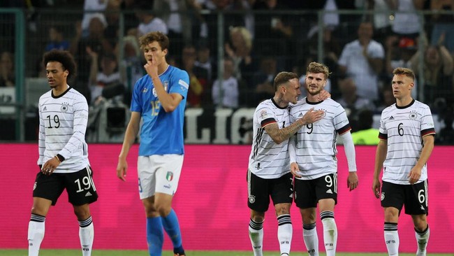 Jerman membantai Italia 5-2 di di UEFA Nations League. Die Mannschaft sempat unggul lima gol lebih dulu sebelum Gli Azzurri membalas dua kali.