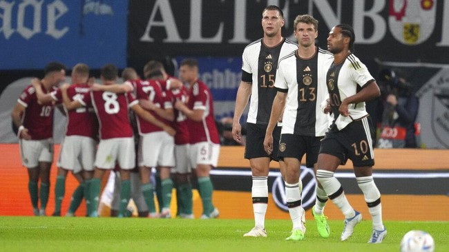 Laga Jerman vs Hongaria di Grup 3 UEFA Nations League A digelar di Red Bull Arena, Leipzig, Sabtu (24/9/2022) dini hari WIB. Jerman kalah dengan skor 0-1 usai tim tamu mencetak gol lewat Adam Szalai pada menit ke-17.