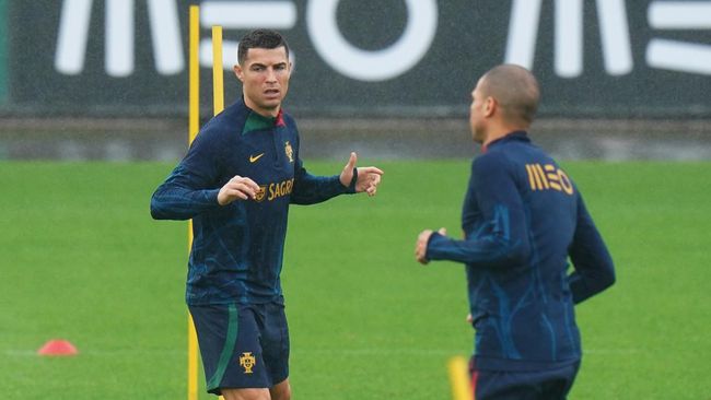 Kemudian, momen yang juga disorot adalah ketika Ronaldo berlatih. Pemain yang juga pernah membela Sporting Lisbon, Real Madrid, dan Juventus itu terlihat mencengkeram Joao Cancelo.