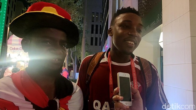 Pendukung Qatar itu bernama Ivan. Dia berasal dari Uganda, Afrika, tapi sudah bekerja di Qatar.