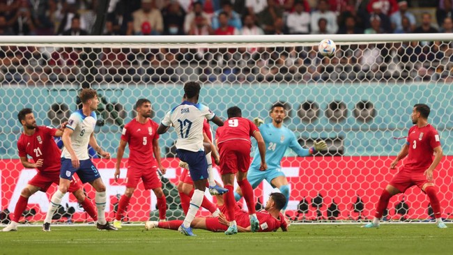 Inggris kini memimpin 3-0 atas Iran dalam laga Grup B Piala Dunia 2022. Sepakan Bukayo Saka dan Raheem Sterling memperlebar selisih.