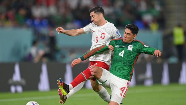 Babak pertama duel Meksiko vs Polandia di 974 Stadium sudah selesai. Tak ada gol tercipta.