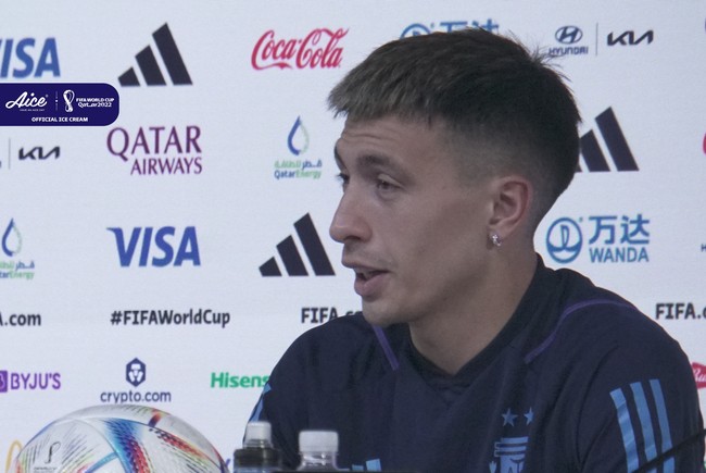 Pemain Timnas Argentina, Lisandro Martinez, menjajal menjawab pertanyaan wartawan dengan bahasa Inggris. Pemain Manchester United itu ditanya mengenai hal apa yang masih ditingkatkan dari dirinya.