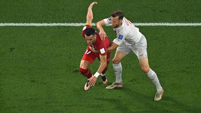 Duel Serbia vs Swiss berjalan alot di lanjutan Grup G Piala Dunia 2022. Keduanya imbang 2-2 saat turun minum, kans lolos pun masih terbuka termasuk buat Kamerun.