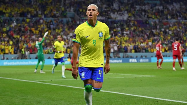 Richalison menambah gol untuk Brasil, saat melawan Korea Selatan di babak 16 besar Piala Dunia 2022. Selecao kini memimpin 3-0 di menit ke-29.