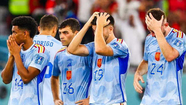 Spanyol menghadapi Maroko di Education City Stadium, Senin (6/12/2022) malam WIB, pada babak 16 besar Piala Dunia 2022. Walaupun tampil amat dominan, Spanyol tak mampu mencetak gol sampai 120 menit alias hingga babak tambahan usai.