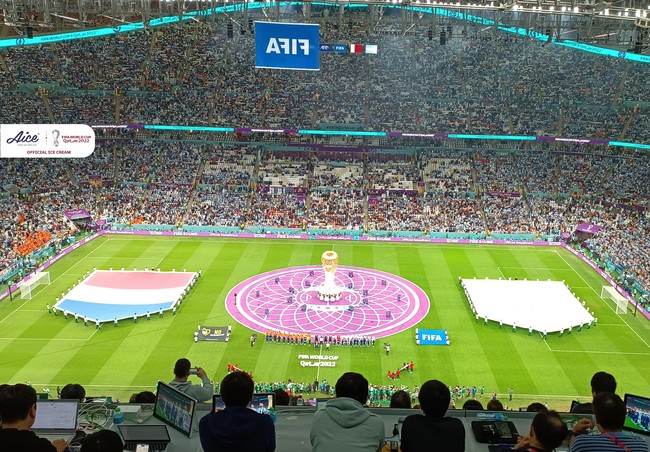 Banyak penonton yang kepayahan untuk mencapai tribune paling atas Stadion Lusail. Kebanyakan dari mereka sudah paruh baya, tampak mereka terengah-engah.