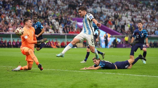 Julian Alvarez dengan sigap menyambar bola tanpa bisa dihalau pemain Kroasia manapun. Livakovic hanya terpaku melihat gawangnya bergetar untuk ketiga kalinya. Skor 3-0 bertahan hingga usai, memastikan Argentina lolos ke final Piala Dunia 2022.