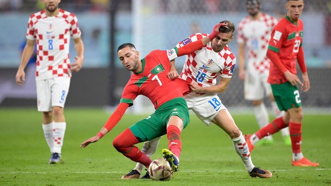 Kroasia vs Maroko dalam duel perebutan peringkat ketiga Piala Dunia 2022 berlangsung di Khalifa International Stadium, Sabtu (17/12/2022). Kroasia mampu membuka gol kala laga baru berjalan tujuh menit.